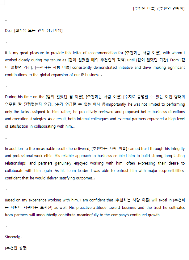레퍼런스 레터는 기본적으로 제3자의 시각에서 지원자의 역량과 성과를 증명해주는 문서입니다.