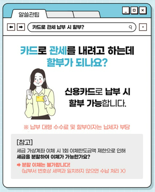 - 목돈 부담이 크다 → 신용카드 할부 납부 활용
