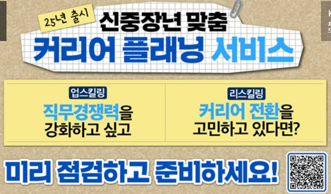 이러한 문제를 해소하고자 정부가 2025년부터 신중장년 맞춤형 커리어 플래닝 서비스를 본격적으로 시작합니다.