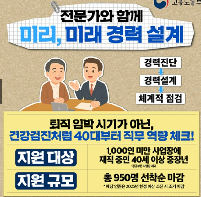 - 지원 대상: 40세 이상, 1,000인 미만 사업장 재직자